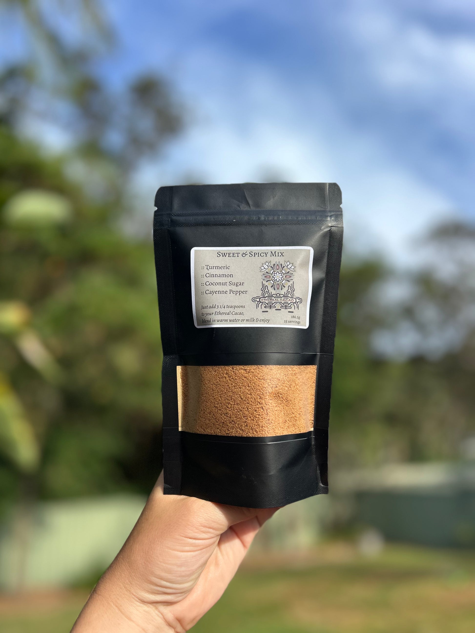 An intentional, grounding mix to elevate your cacao experience. Just enough sweetness and spice for every cup.